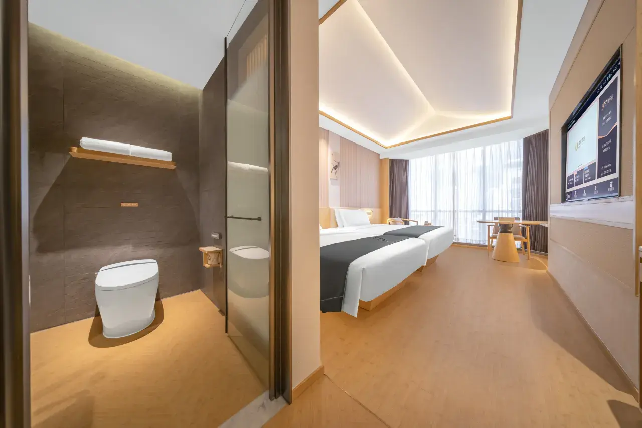 这种房型以其高端设施而著称,其中包括: 莱芬高速吹风机,一个 恒温雨淋式花洒,以及一个 智能马桶集成 智能宾客控制 优黄居双床间配备齐全的室内洗衣设施(洗衣机和烘干机),确保您在城市中享受轻松愉悦的住宿体验。